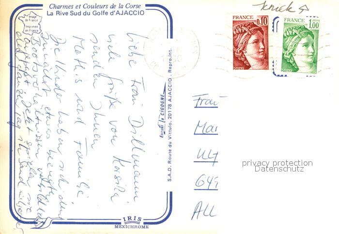 13144023 carte postale Ajaccio La Rive Sud du Golfe d’Ajaccio Vue aerienne postalisch gelaufen Erhaltung siehe scans [WerneD78] KatCode: 1117002A12A004
