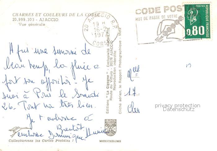 13519511 carte postale Ajaccio Stadtpanorama postalisch gelaufen Erhaltung siehe scans [KathaD81] KatCode: 1117002A12A004