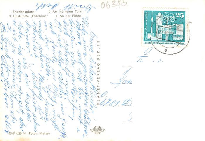 73884283 alte Postkarte Aken Elbe Friedensplatz Am Koethener Turm Gaststaette Faehrhaus An der Faehre postalisch gelaufen Erhaltung siehe scans [FriedD77] KatCode: 11110015082005