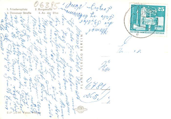 73884282 alte Postkarte Aken Elbe Friedensplatz Dessauer Strasse Burgstrasse Elbepartie postalisch gelaufen Erhaltung siehe scans [FriedD77] KatCode: 11110015082005