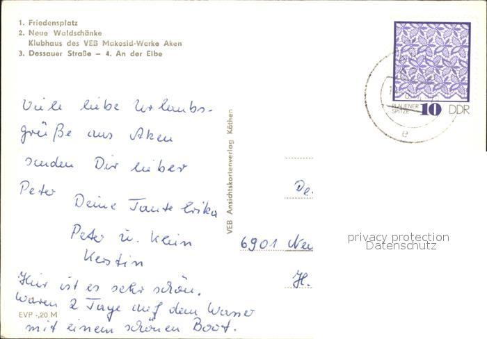 72446953 alte Postkarte Aken Elbe Friedensplatz Dessauer Strasse postalisch gelaufen Erhaltung siehe scans KatCode: 11110015082005