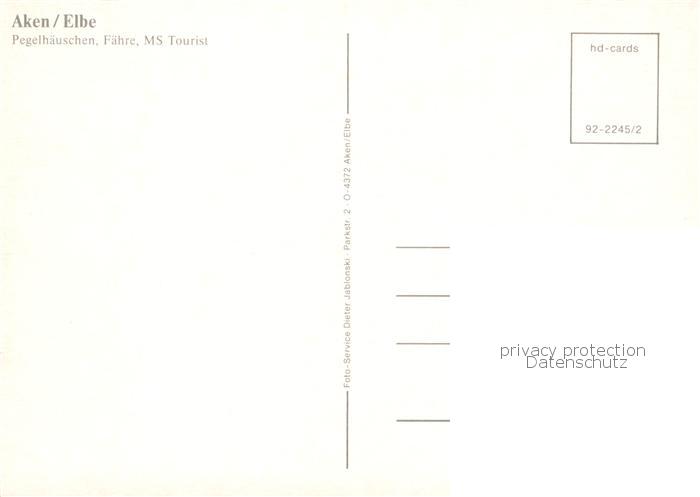 73840076 Aken Elbe Pegelhaeuschen Faehre MS Tourist postalisch nicht gelaufen Erhaltung siehe scans [WerneD78] KatCode: 11110015082005
