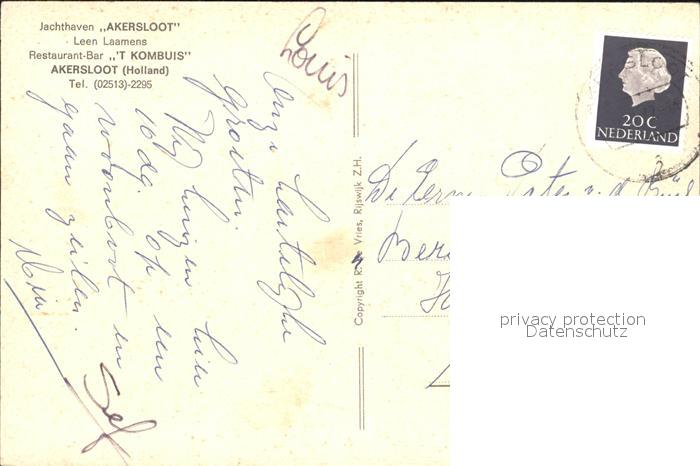 old postcard Akersloot Jachthaven Restaurant Bar T Kombuis postalisch gelaufen Erhaltung siehe scans