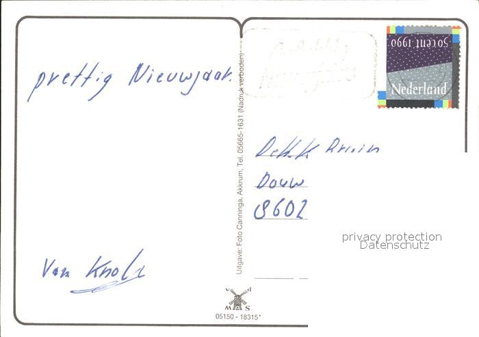 old postcard Akkrum Kirche Motorboot postalisch gelaufen Erhaltung siehe scans