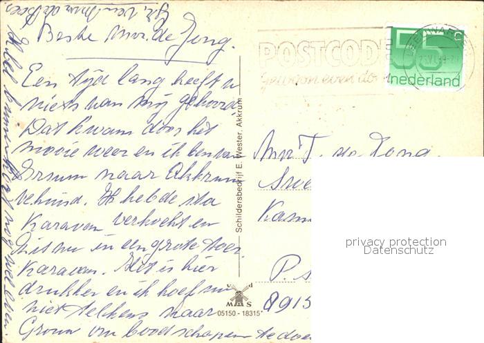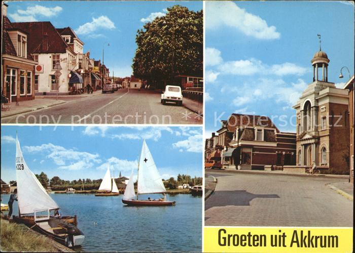 old postcard Akkrum Ortspartie Kirche Segelboot Wassersport postalisch gelaufen Erhaltung siehe scans