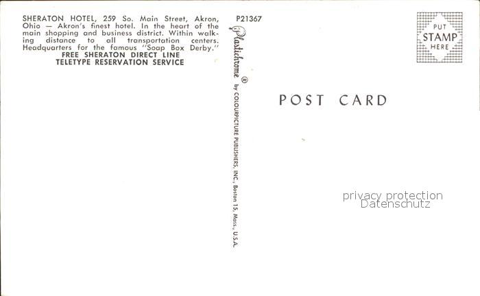 72293189 Akron Ohio Sheraton Hotel postalisch nicht gelaufen Erhaltung siehe scans KatCode: 14140370000000