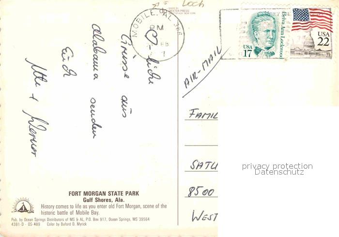 72812585 old postcard Alabama US-State Fort Morgan State Park postalisch gelaufen Erhaltung siehe scans [WerneD78] KatCode: 14140010000000