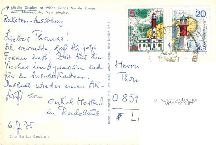 72824898 old postcard Alamogordo Missile Display at White Sands postalisch gelaufen Erhaltung siehe scans [LiesaD40] KatCode: 14140330000000