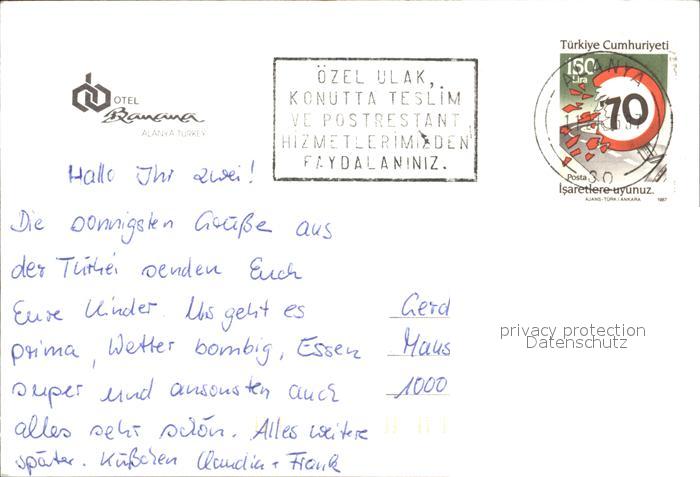 old postcard Alanya Hotel Banana postalisch gelaufen Erhaltung siehe scans