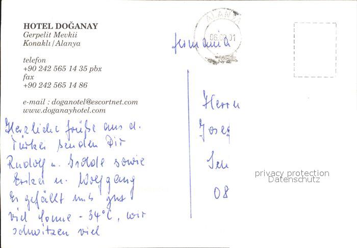 old postcard Alanya Hotel Doganay Strad postalisch gelaufen Erhaltung siehe scans