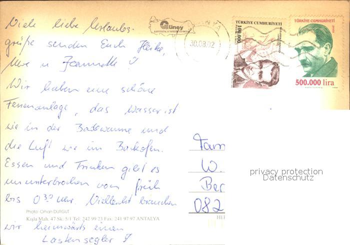 old postcard Alanya Luftbild postalisch gelaufen Erhaltung siehe scans