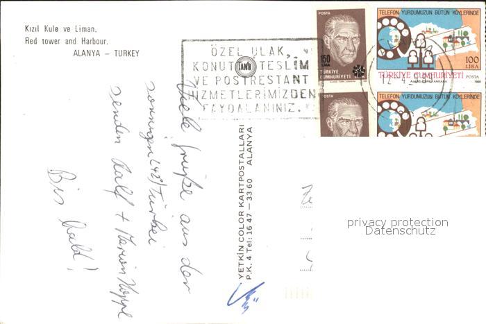 old postcard Alanya Red Tower Harbour postalisch gelaufen Erhaltung siehe scans