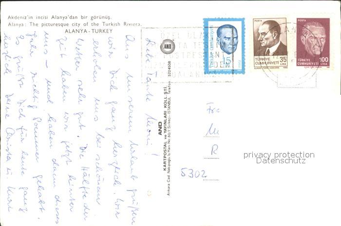 old postcard Alanya Strand Kastel postalisch gelaufen Erhaltung siehe scans