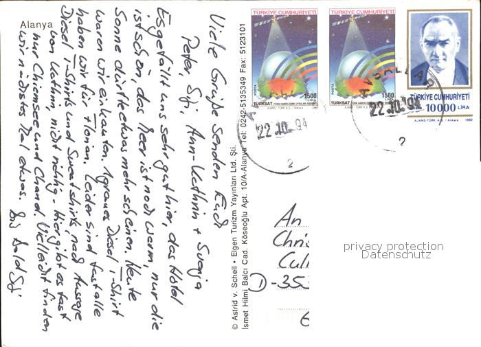 old postcard Alanya Teilansicht postalisch gelaufen Erhaltung siehe scans