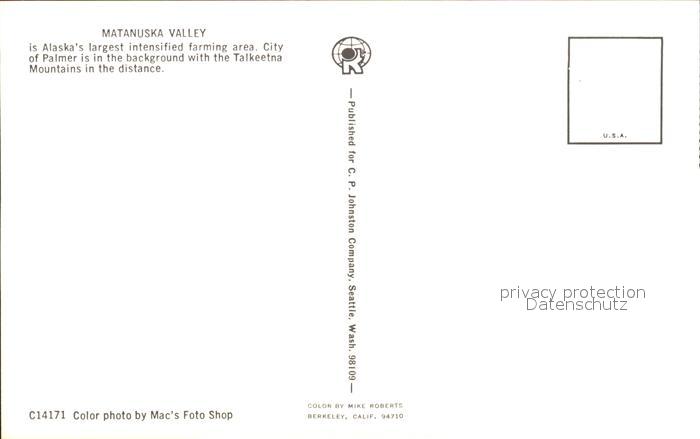 11693187 Alaska US-State Matanuska Valley Fliegeraufnahme postalisch nicht gelaufen Erhaltung siehe scans KatCode: 14140020000000