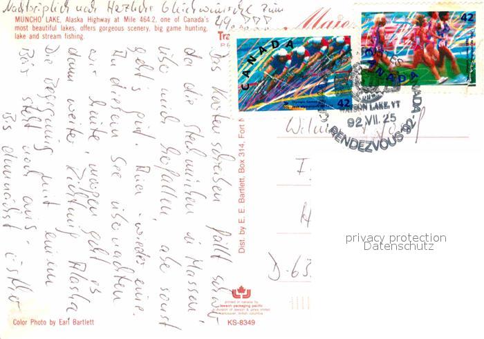 72898222 old postcard Alaska US-State Muncho Lake postalisch gelaufen Erhaltung siehe scans [KathaD81] KatCode: 14140020000000