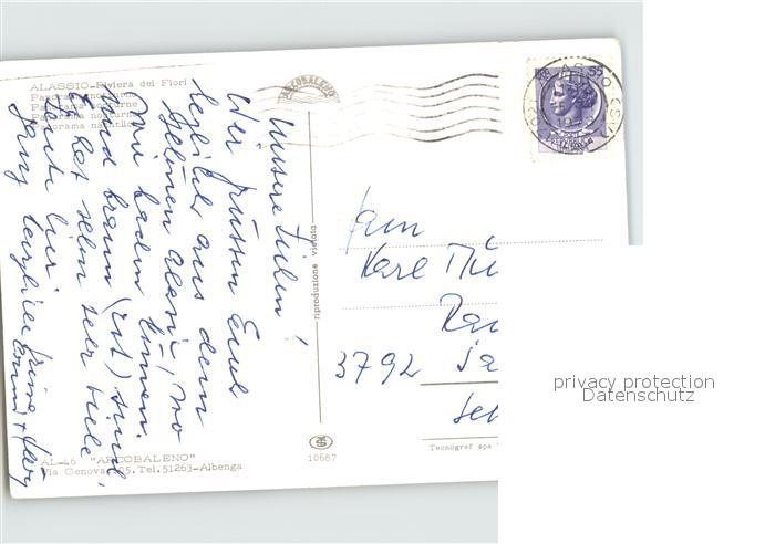 old postcard ALAssIO Savona Liguria IT postalisch gelaufen Erhaltung siehe scans