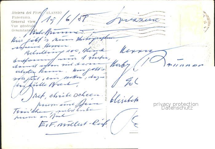 old postcard ALAssIO Savona Liguria IT postalisch gelaufen Erhaltung siehe scans