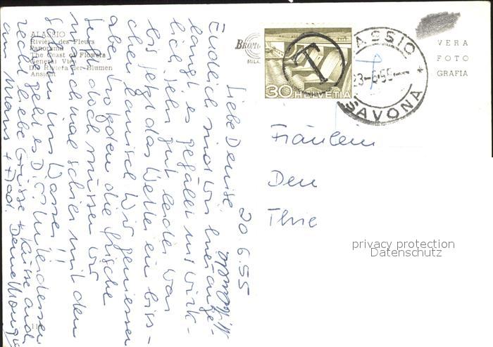 old postcard ALAssIO Savona Liguria IT postalisch gelaufen
