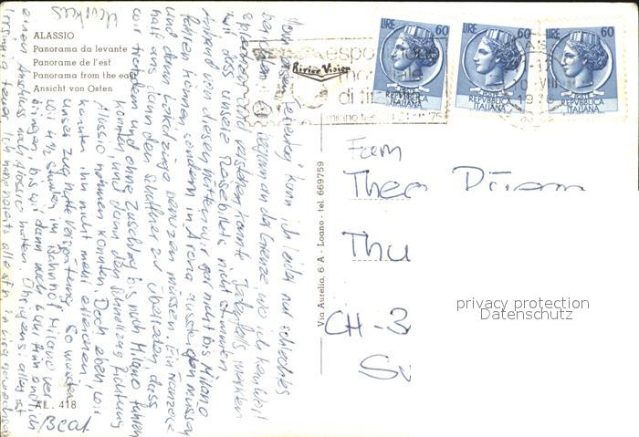 old postcard ALAssIO Savona Liguria IT postalisch gelaufen Erhaltung siehe scans