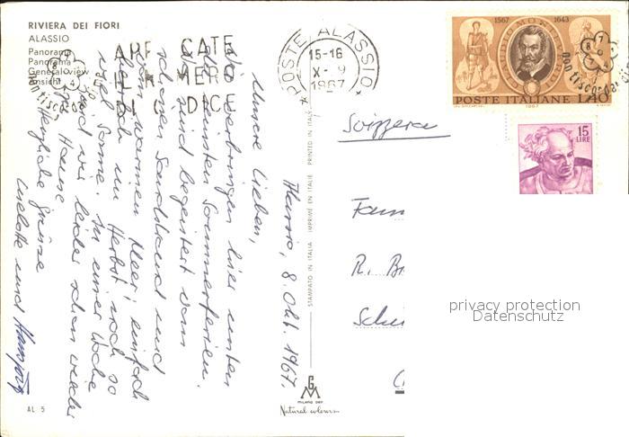 old postcard ALAssIO Savona Liguria IT postalisch gelaufen Erhaltung siehe scans