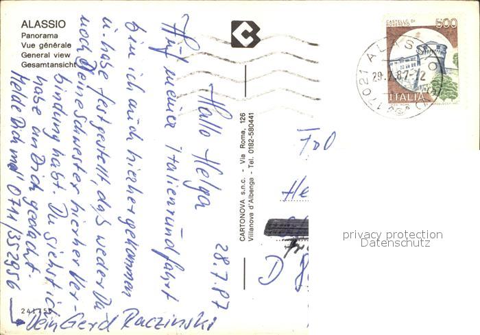 old postcard ALAssIO Savona Liguria IT postalisch gelaufen Erhaltung siehe scans