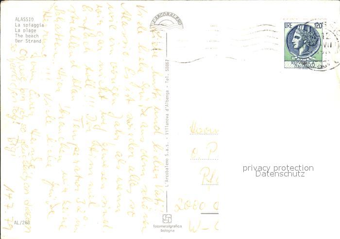 old postcard ALAssIO Savona Liguria IT Der Strand postalisch gelaufen Erhaltung siehe scans