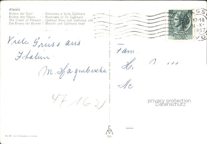 old postcard ALAssIO Savona Liguria IT Gallinara Insel postalisch gelaufen Erhaltung siehe scans