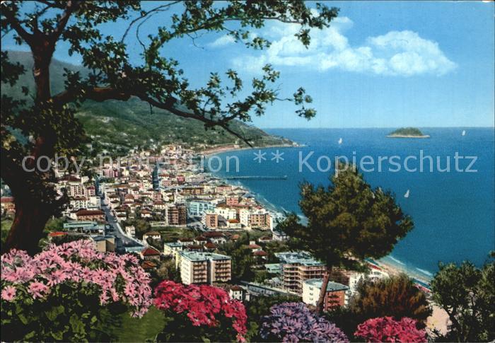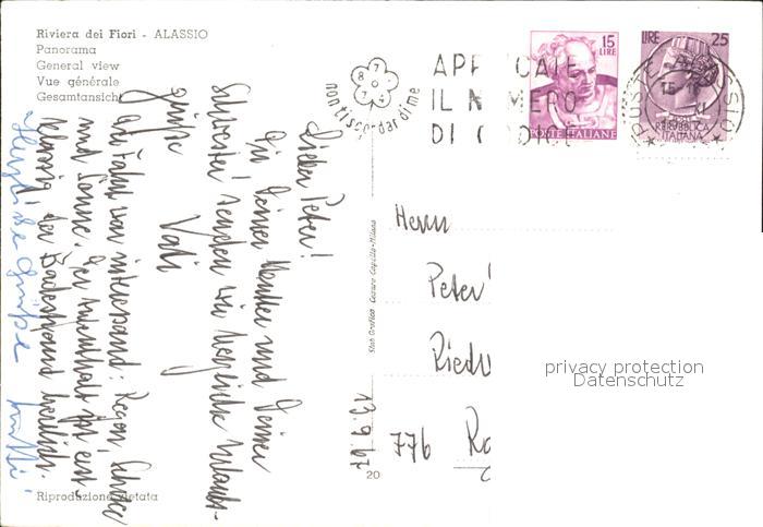 old postcard ALAssIO Savona Liguria IT Gesamtansicht postalisch gelaufen Erhaltung siehe scans