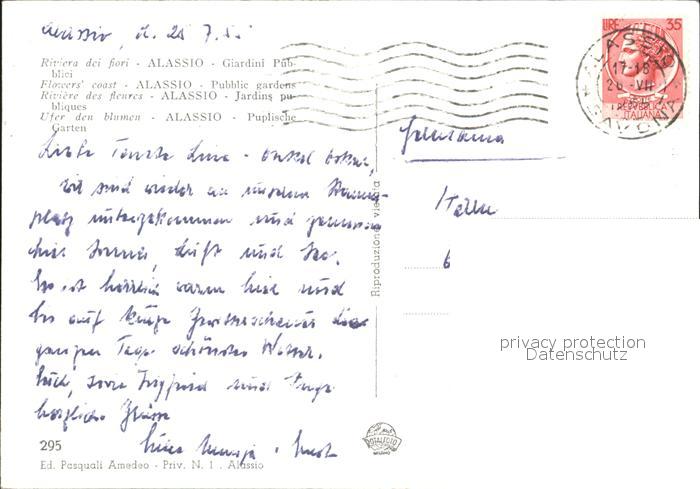 old postcard ALAssIO Savona Liguria IT Giardini pubblica postalisch gelaufen Erhaltung siehe scans