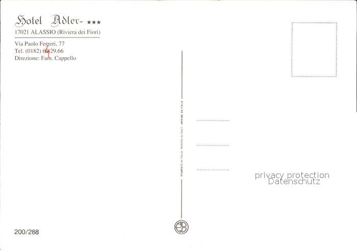 ALAssIO Savona Liguria IT Hotel Adler postalisch nicht gelaufen Erhaltung siehe scans