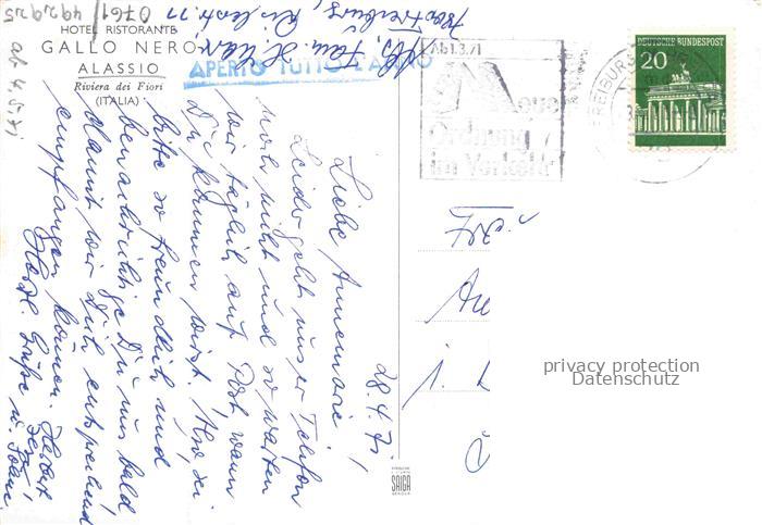 74142406 old postcard ALAssIO Savona Liguria IT Hotel Ristorante Gallo Nero postalisch gelaufen Erhaltung siehe scans [FriedD77] KatCode: 11240