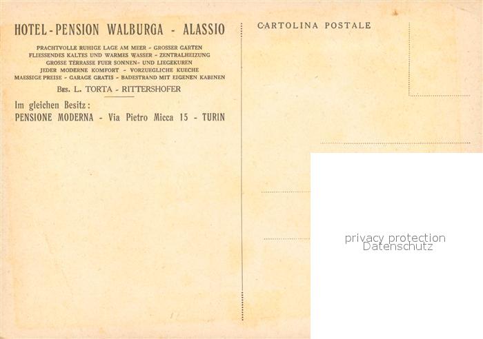13046569 ALAssIO Savona Liguria IT Hotel Walburga postalisch nicht gelaufen Erhaltung siehe scans [NatalD47] Nata Katcode 11240