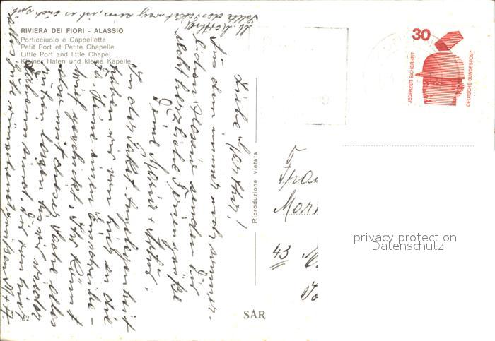 old postcard ALAssIO Savona Liguria IT Kleiner Hafen und Kapelle postalisch gelaufen Erhaltung siehe scans