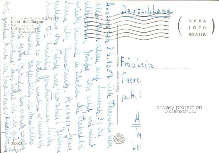 old postcard ALAssIO Savona Liguria IT L’ora del Bagno postalisch gelaufen Erhaltung siehe scans