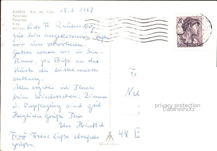 old postcard ALAssIO Savona Liguria IT mit Pferdekutsche postalisch gelaufen Erhaltung siehe scans