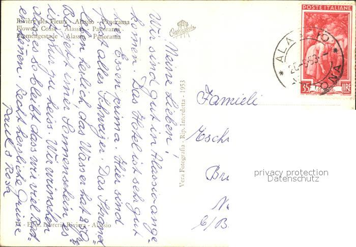 old postcard ALAssIO Savona Liguria IT mit Strand postalisch gelaufen Erhaltung siehe scans