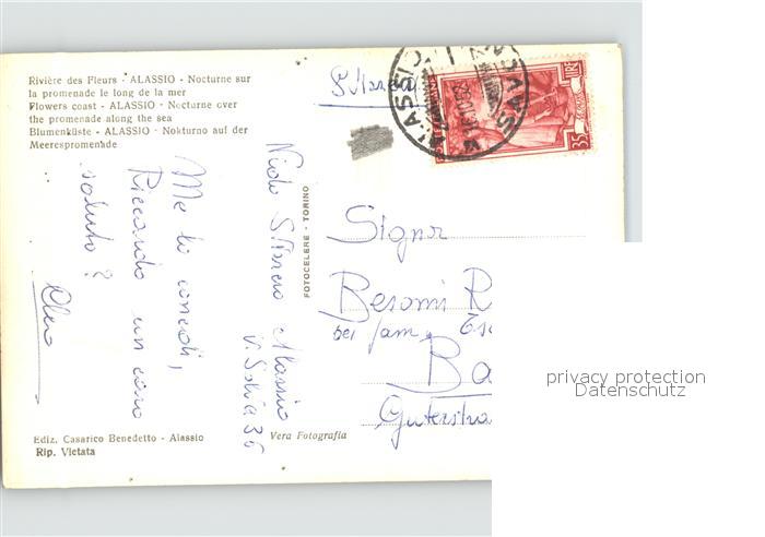old postcard ALAssIO Savona Liguria IT Notturno sulla passegiata a mare postalisch gelaufen Erhaltung siehe scans