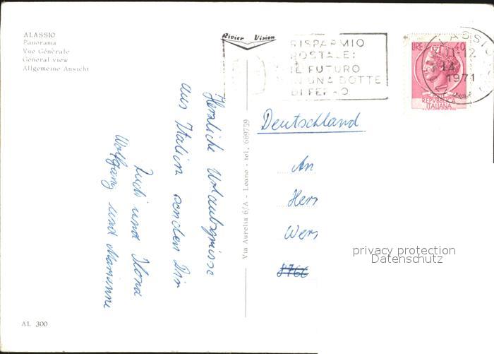 old postcard ALAssIO Savona Liguria IT Panorama postalisch gelaufen Erhaltung siehe scans