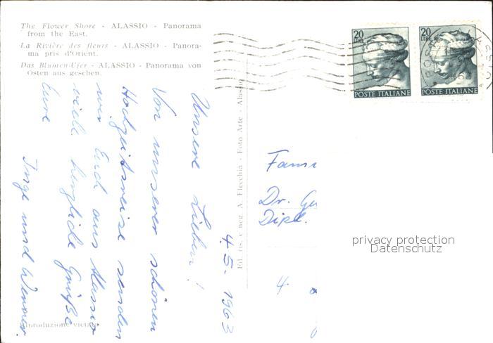 old postcard ALAssIO Savona Liguria IT Panorama da levante postalisch gelaufen Erhaltung siehe scans