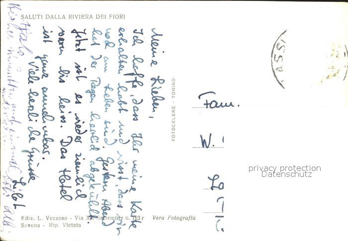 old postcard ALAssIO Savona Liguria IT Panorama da Levante postalisch gelaufen Erhaltung siehe scans