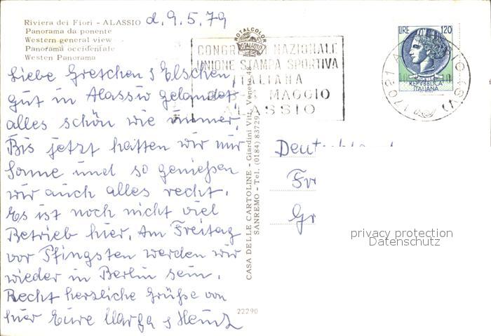 old postcard ALAssIO Savona Liguria IT Panorama Kueste Orangenbaum postalisch gelaufen Erhaltung siehe scans