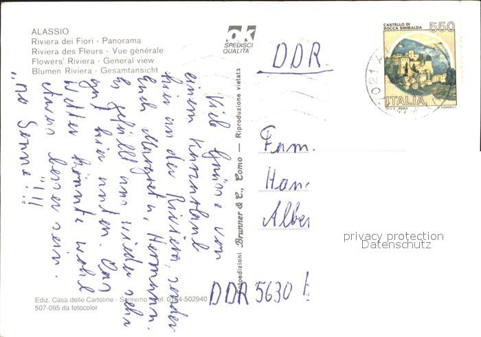 old postcard ALAssIO Savona Liguria IT Panorama Riviera dei Fiori postalisch gelaufen Erhaltung siehe scans