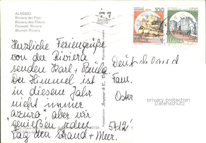 old postcard ALAssIO Savona Liguria IT Panorama Riviera dei Fiori postalisch gelaufen Erhaltung siehe scans