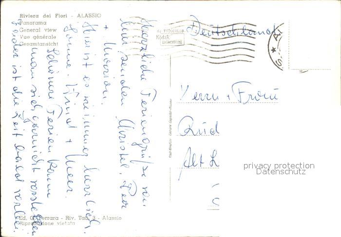 old postcard ALAssIO Savona Liguria IT Panorama Riviera dei Fiori postalisch gelaufen Erhaltung siehe scans