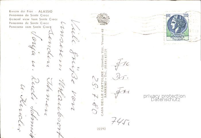 old postcard ALAssIO Savona Liguria IT Panorama Santa Croce postalisch gelaufen Erhaltung siehe scans