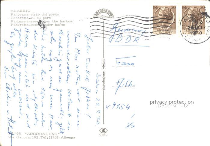 old postcard ALAssIO Savona Liguria IT Panorama visto dal porto postalisch gelaufen Erhaltung siehe scans