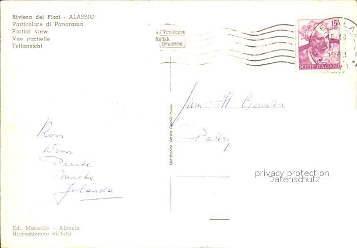 old postcard ALAssIO Savona Liguria IT Particolare di Panorama postalisch gelaufen Erhaltung siehe scans