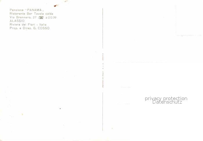 ALAssIO Savona Liguria IT Pensione Panama Ristorante Bar postalisch nicht gelaufen Erhaltung siehe scans [WerneD78]
