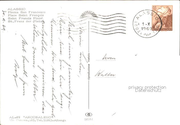 old postcard ALAssIO Savona Liguria IT Piazza San Francesco postalisch gelaufen Erhaltung siehe scans
